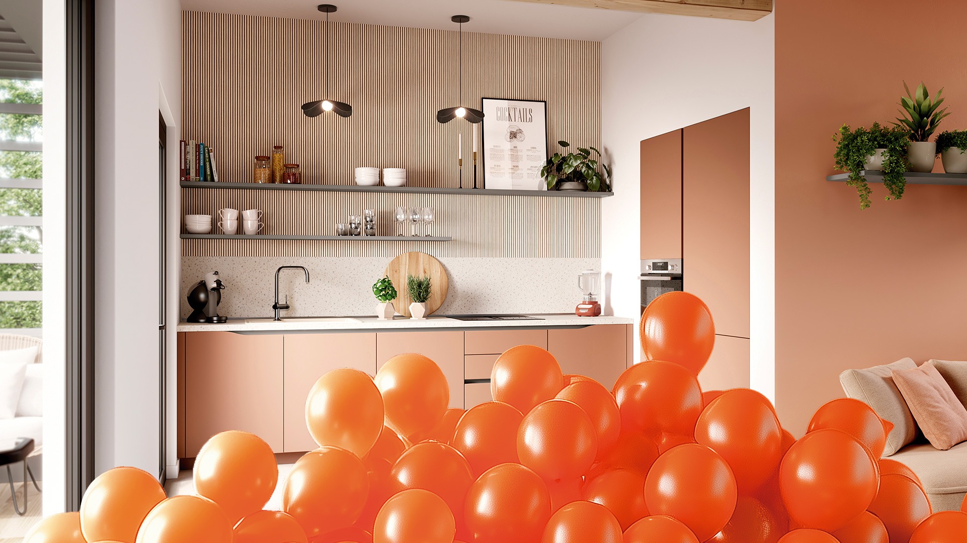 Aunque las cocinas blancas siguen siendo populares, en 2025 la combinación de colores neutros con detalles en negro, gris oscuro o madera oscura estará en tendencia.